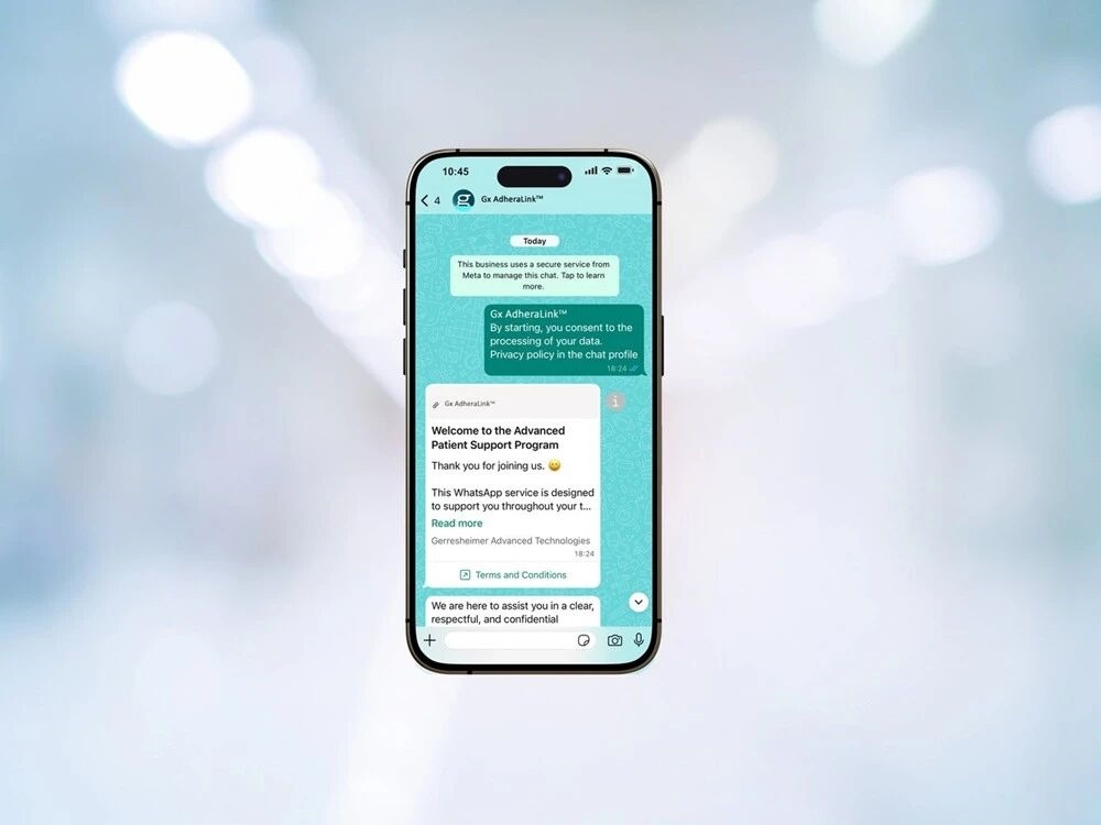 通过与 Gx AdheraLink 连接,患者支持服务得以进一步强化。该解决方案利用人工智能(AI)技术,在患者所青睐的即时通讯应用程序(如 WhatsApp 或 iMessage)上实现个性化的、智能的、即时的患者互动。由于无需安装新应用、熟悉新界面或在多个账户间进行切换,用户体验更加顺畅,使用门槛大幅降低。Gx AdheraLink 可针对特定药物和治疗方案进行定制,确保向患者提供准确、可信的信息。在预定的注射时间之前,该系统能够及时发送提醒和提示信息,这有助于患者在心理上为即将到来的注射做好准备,从而有效缓解焦虑情绪并促进规律用药习惯的养成。注射结束后,Gx AdheraLink 会推送鼓励性讯息,为患者提供正向激励。此外,系统支持患者记录并分享多维度的注射反馈——涵盖注射部位、疼痛评分及整体感受,所有数据将实时同步至护理团队。
